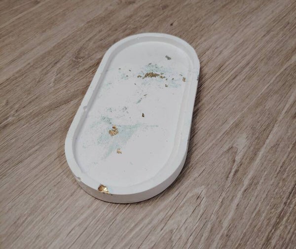 Nydelige lysbrett laget av gips med gulldetaljer. Hvert brett er håndlaget og har et unikt design. Hvert brett ser ulikt ut fra bildet, men er hvitt med grønne- og gulldetaljer.