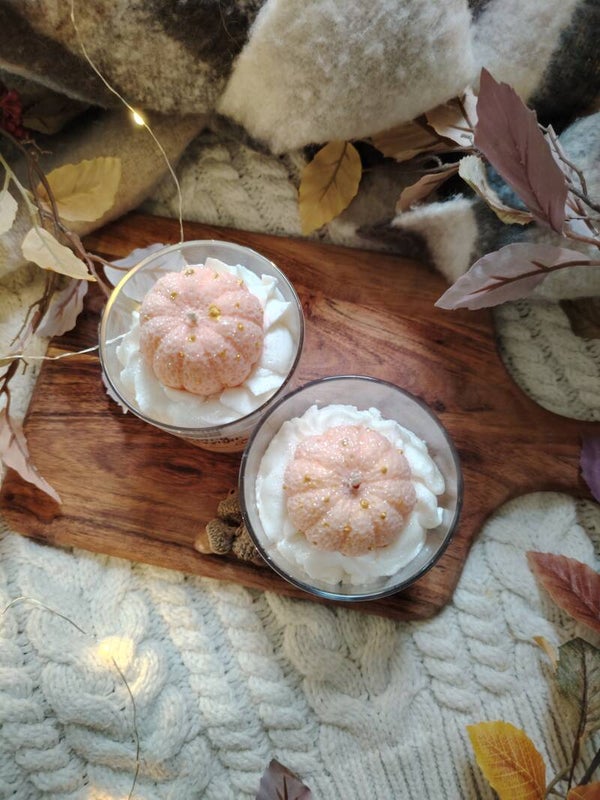 Dette søte gresskar dekorlyset dufter herlig gresskar spice og laget av ren soyavoks. 5% duft olje.