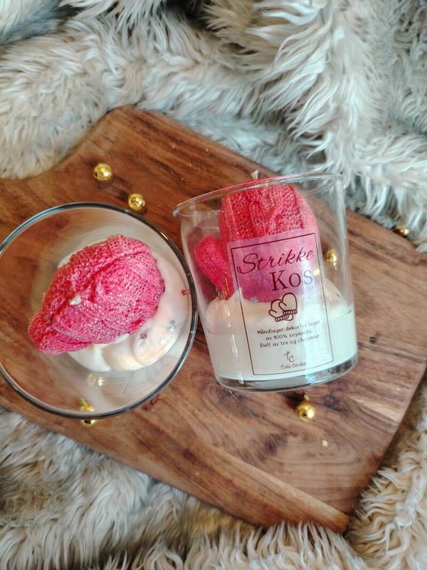 Jule votten er her. Et soyavokslys som passer perfekt til en strikkeglad venn, deg selv eller noen som bare elsker votter.